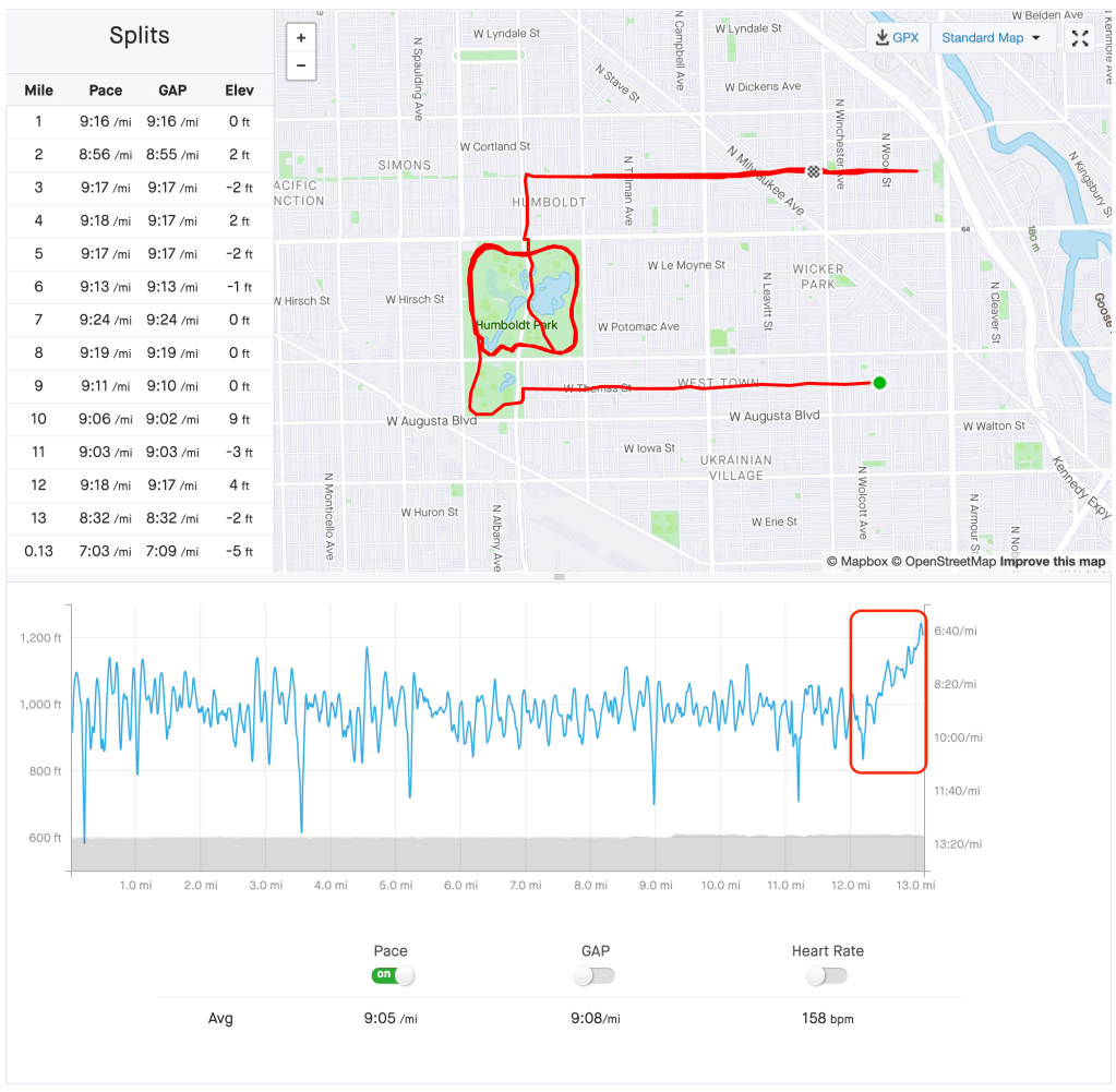 So my route is out to Humboldt from my hood and then I do a bunch of laps around Humboldt and head over to the 606 trail and finish the “race” on the rubber path they have on the trail.